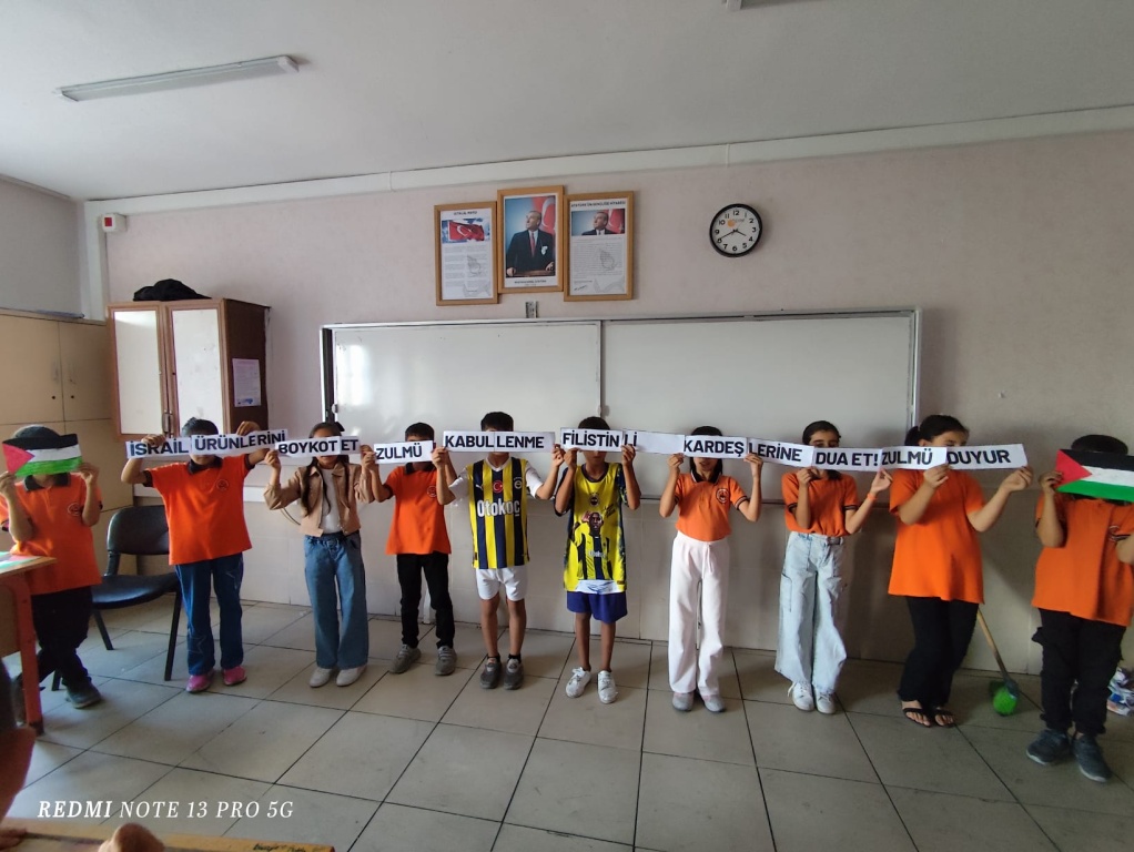 Bakanlığımızın Türkiye Yüzyılı Maarif Modeli’nin (TYMM) Erdem-Değer-Eylem yaklaşımı doğrultusunda, Filistin meselesi ve Küresel Sumud Filosu gündemi kapsamında 'Filistin Farkındalık Etkinlikleri' düzenlenmiştir.Emek veren tüm öğretmen ve öğrencilerimize teşekkür ederiz.